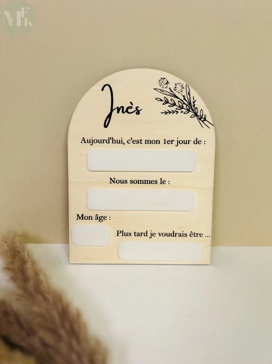 Carte étape bois personnalisée coquillage "SHELL" 12 mois