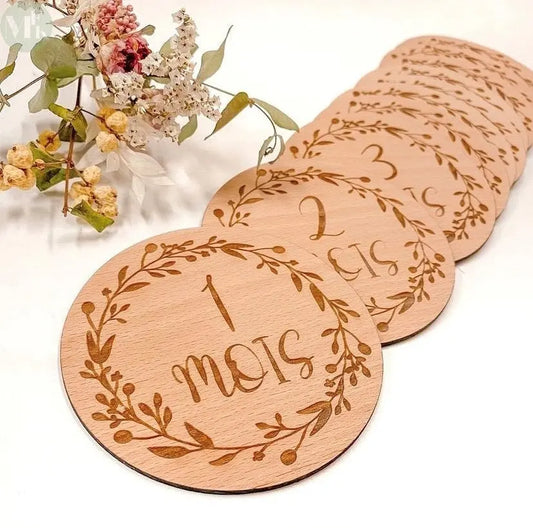 Carte étape bois personnalisée coquillage "SHELL" 12 mois