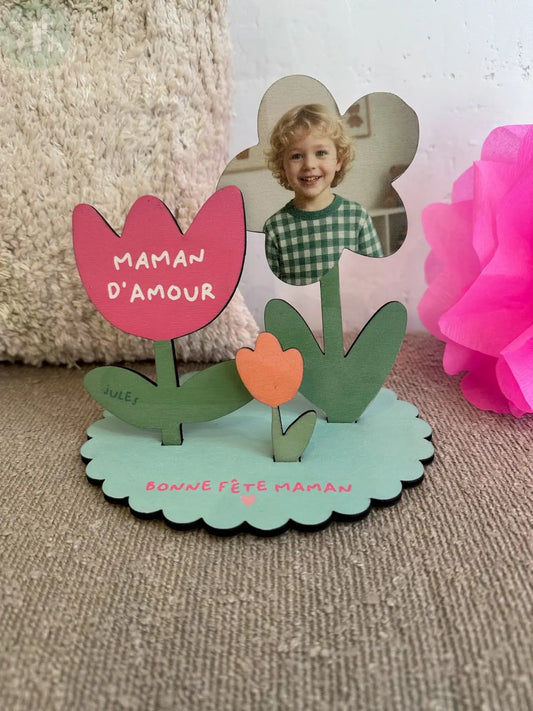 Cadeau Fête des Mères personnalisé – Fleurs en bois avec photo et message