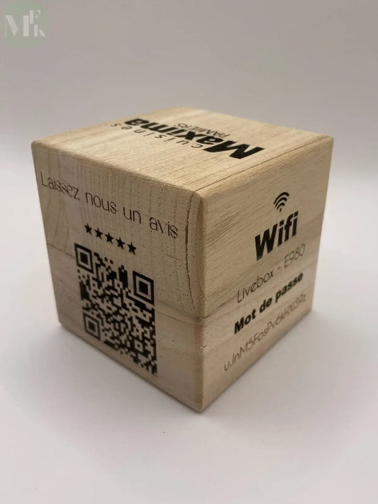 Cube en bois personnalisé publicitaire gravé (Wifi,Fonction,QR code)